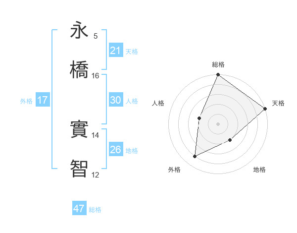 永橋 實智さんの外格は17画の4点!
