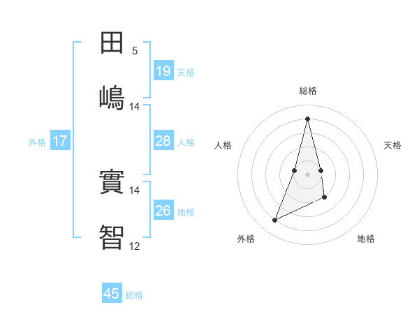 田嶋 實智さんの総格は45画の4点!