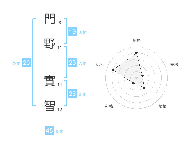 門野 實智さんの総格は45画の4点!