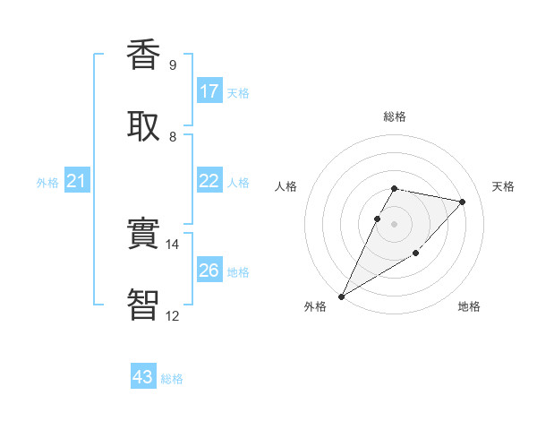 香取 實智さんの天格は17画の4点!