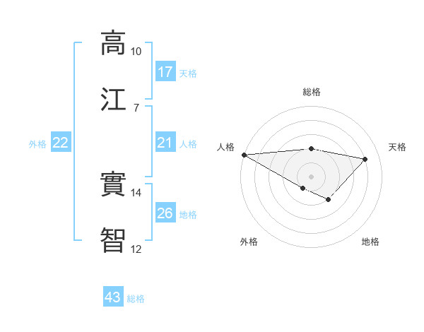 高江 實智さんの天格は17画の4点!