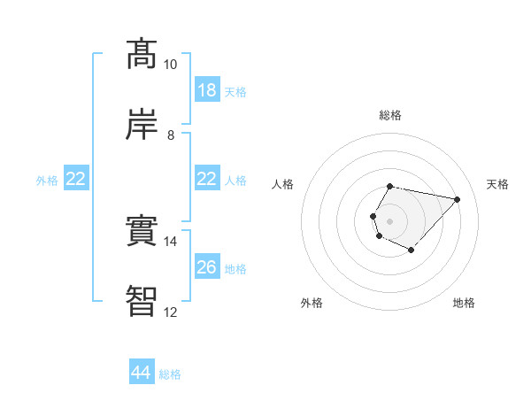 髙岸 實智さんの総格は44画の2点!