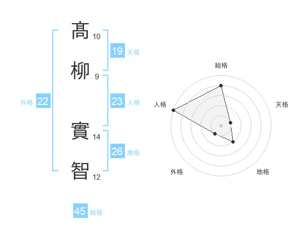 髙柳 實智さんの総格は45画の4点!