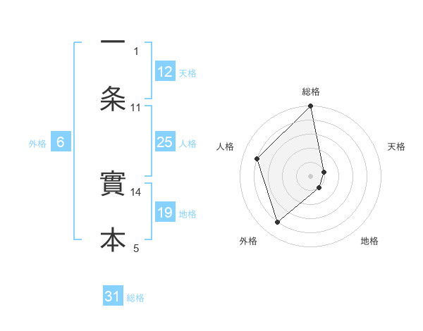 一条 實本さんの総格は31画の5点!