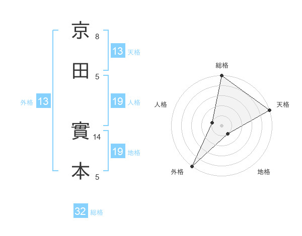 京田 實本さんの天格は13画の5点!