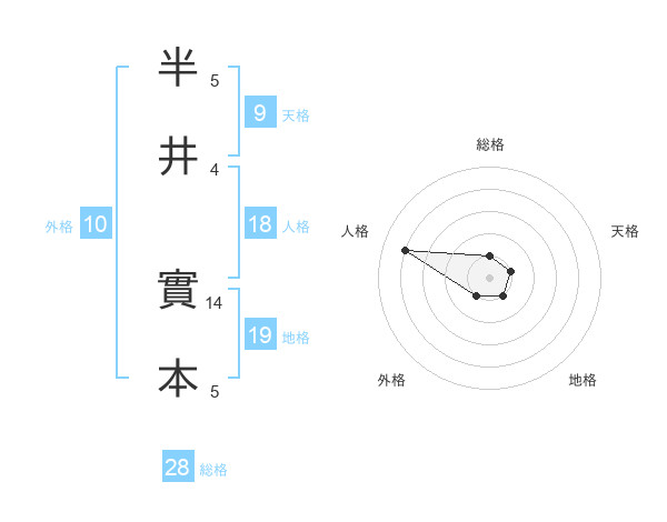 半井 實本さんの総格は28画の1点!