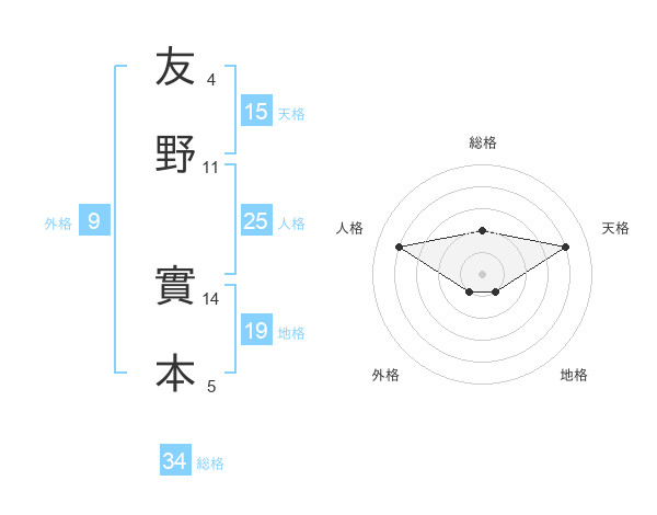 友野 實本さんの総格は34画の2点!
