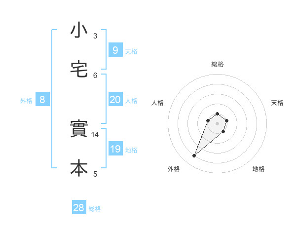 小宅 實本さんの総格は28画の1点!