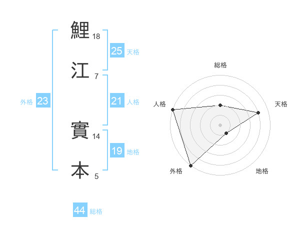 鯉江 實本さんを姓名の画数から五運を鑑定