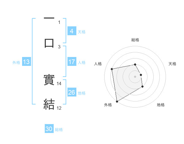 一口 實結さんの外格は13画の5点!