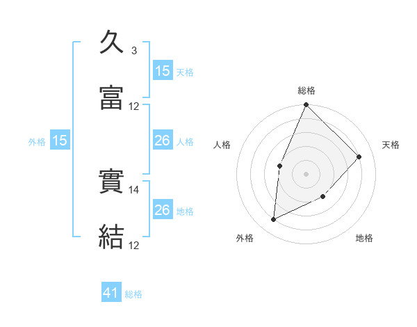 久富 實結さんの総格は41画の5点!