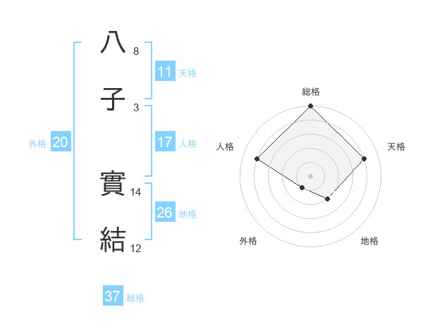八子 實結さんの地格は26画の2点!