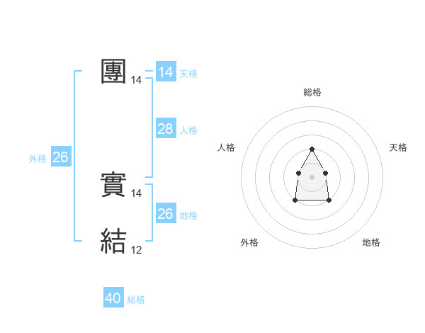 團 實結さんの総格は40画の2点!