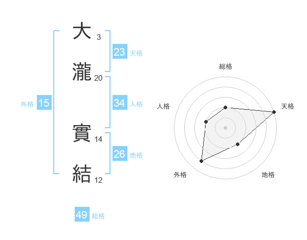 大瀧 實結さんを姓名の画数から五運を鑑定