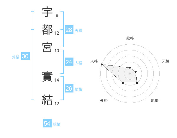 宇都宮 實結さんを姓名の画数から五運を鑑定