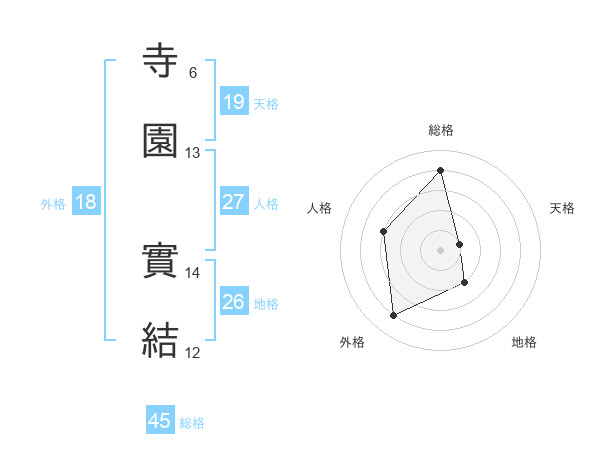 寺園 實結さんの総格は45画の4点!