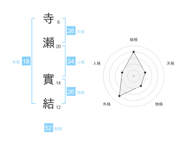 寺瀬 實結さんの総格は52画の4点!