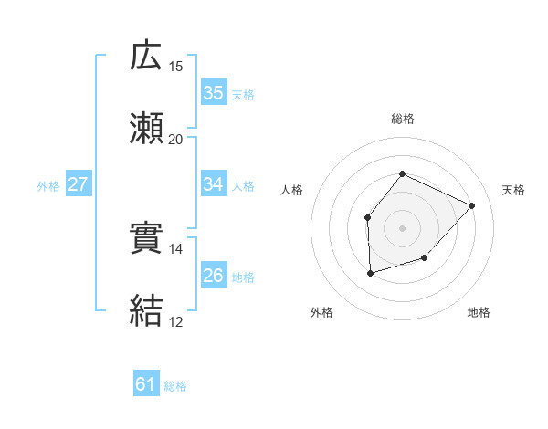 広瀬 實結さんを姓名の画数から五運を鑑定