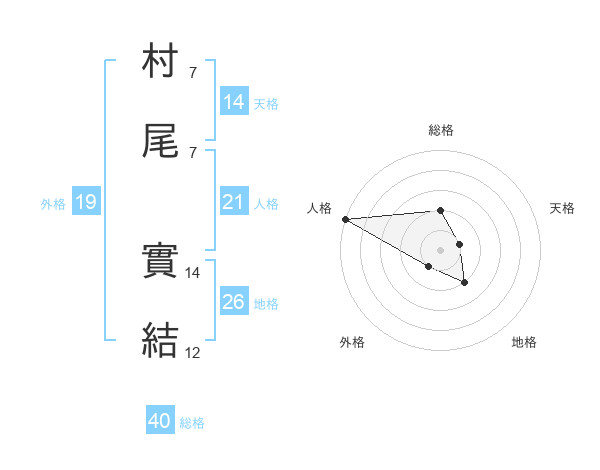村尾 實結さんの総格は40画の2点!