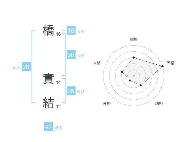 橋 實結さんの地格は26画の2点!
