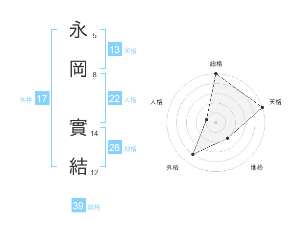 永岡 實結さんの総格は39画の5点!