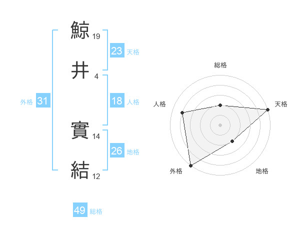 鯨井 實結さんの天格は23画の5点!