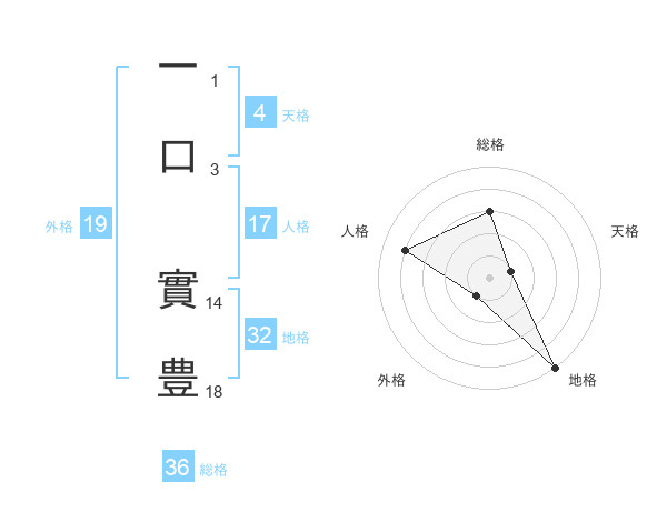 一口 實豊さんの地格は32画の5点!