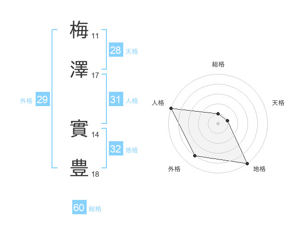 梅澤 實豊さんの外格は29画の4点!