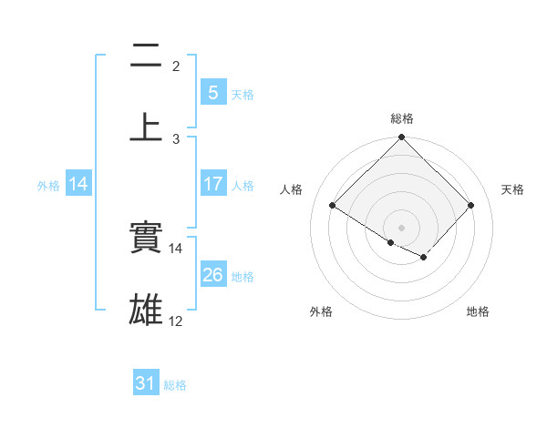 二上 實雄さんの総格は31画の5点!