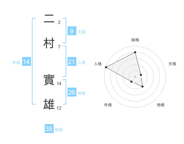 二村 實雄さんの総格は35画の4点!