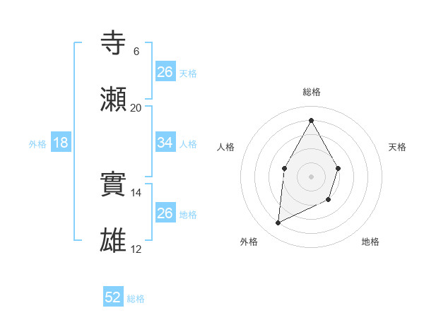寺瀬 實雄さんの総格は52画の4点!