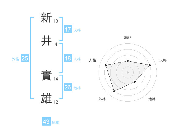 新井 實雄さんの総格は43画の2点!