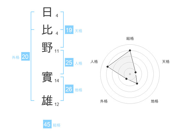 日比野 實雄さんを姓名の画数から五運を鑑定