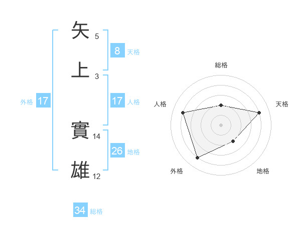 矢上 實雄さんの天格は8画の4点!