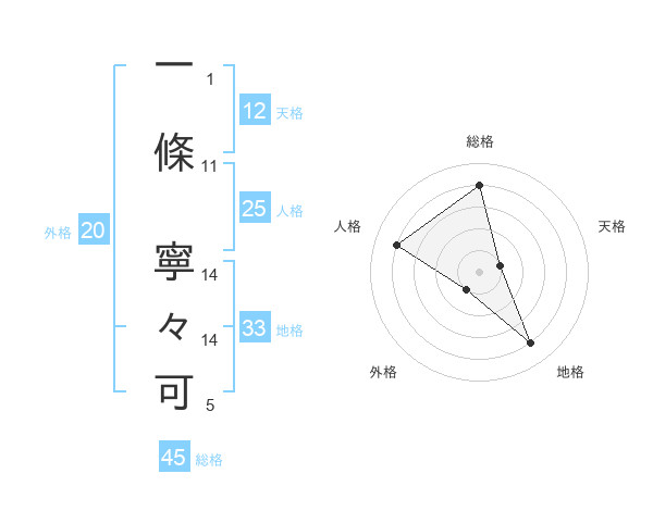 一條 寧々可さんの外格は20画の1点!