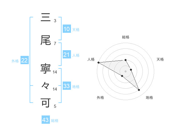 三尾 寧々可さんを姓名の画数から五運を鑑定