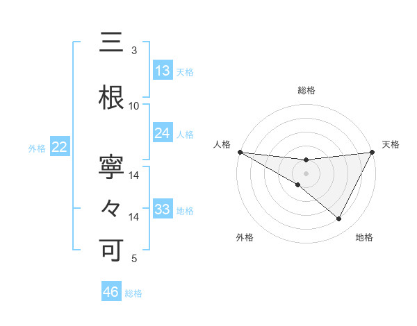 三根 寧々可さんを姓名の画数から五運を鑑定