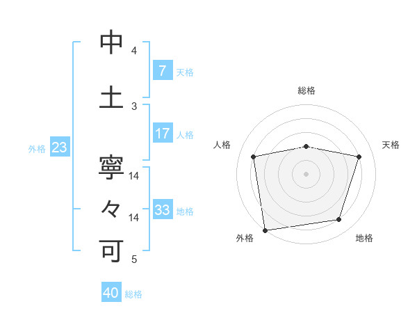 中土 寧々可さんの外格は23画の5点