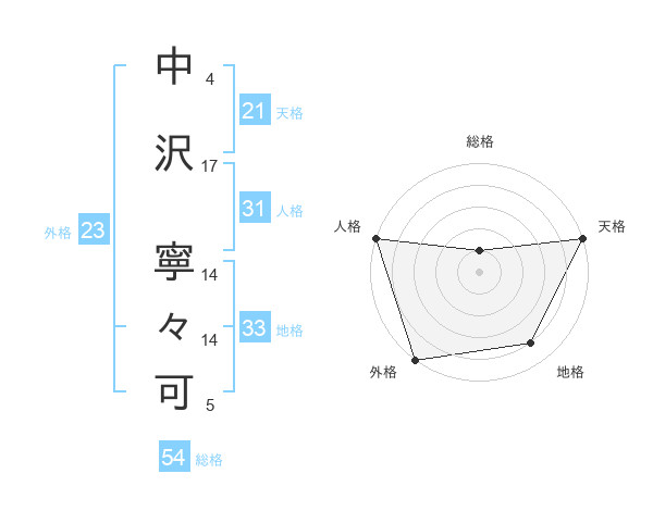 中沢 寧々可さんを姓名の画数から五運を鑑定