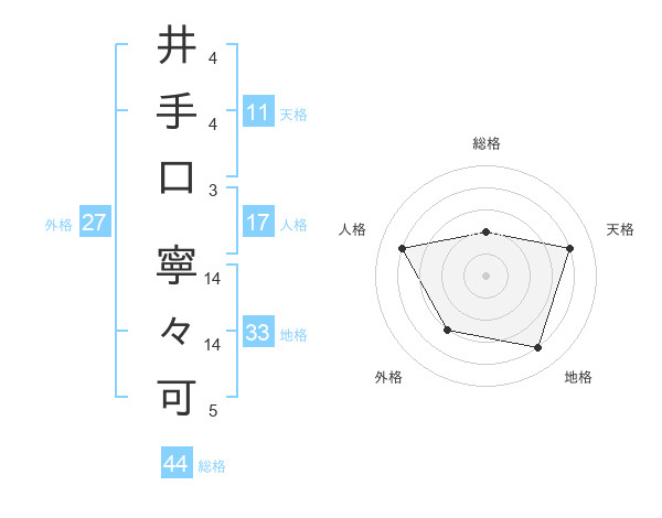 井手口 寧々可さんを姓名の画数から五運を鑑定
