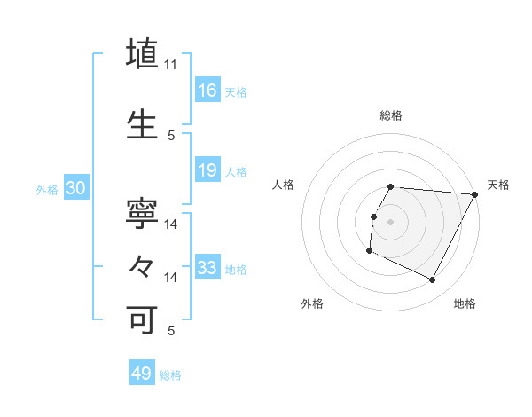埴生 寧々可さんを姓名の画数から五運を鑑定