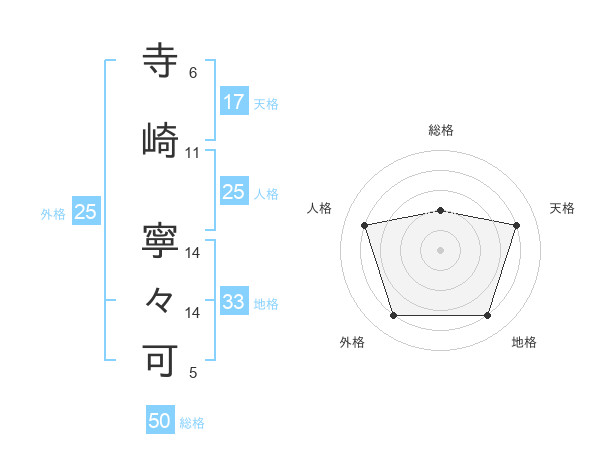 寺崎 寧々可さんを姓名の画数から五運を鑑定