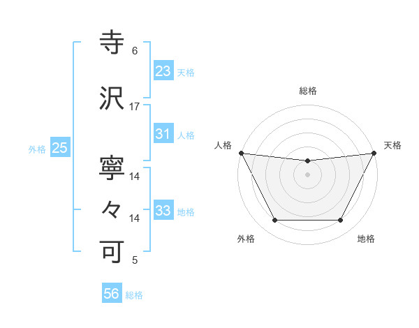 寺沢 寧々可さんを姓名の画数から五運を鑑定