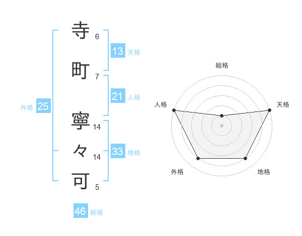 寺町 寧々可さんを姓名の画数から五運を鑑定