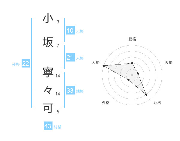 小坂 寧々可さんを姓名の画数から五運を鑑定