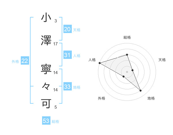 小澤 寧々可さんの外格は22画の1点!