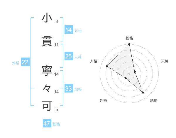 小貫 寧々可さんを姓名の画数から五運を鑑定