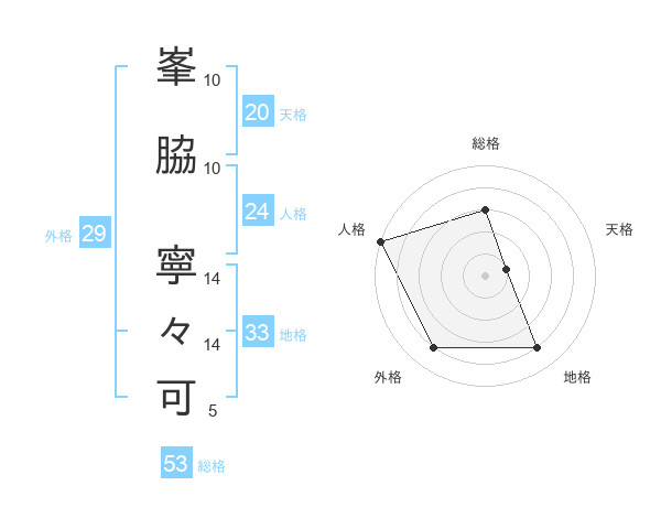 峯脇 寧々可さんを姓名の画数から五運を鑑定
