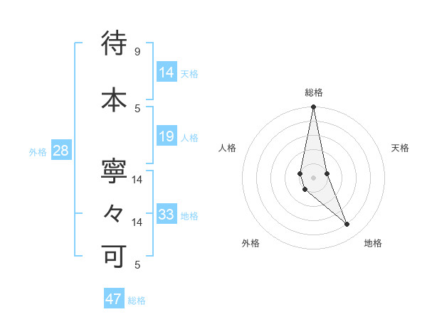 待本 寧々可さんを姓名の画数から五運を鑑定