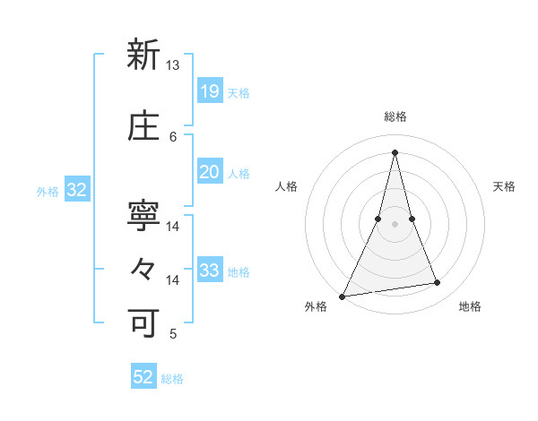 新庄 寧々可さんの外格は32画の5点!